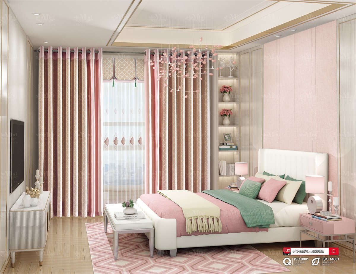 黄瓜成视频人APP-粉色卧室遮光窗帘效果图