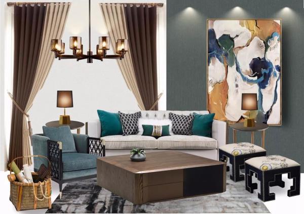 软装可以参考图片的样子去选择,要求不高但求相似,风格、款式、颜色、质感都差不多就行,越简约越容易搭配,假如是繁复华实的软装就最好按图片的。