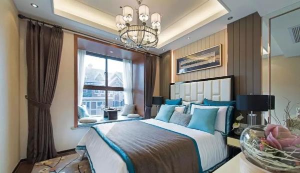 飘窗靠窗装还是靠墙装,这个要看具体情况而定。小户型房间或者飘窗两侧都有柜子的,最好就是靠窗装;而靠墙装则能提升空间视觉,并能起到不错的遮光效果。